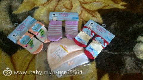 носочки и шапочка! все новенькое, маленькое, миленькое! особенно шапочка понравилась (прям девчонку захотелось )!