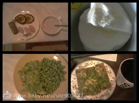 Обед (прогуляли на улице долго, погода супер, так что успела малость себе сварганить) горошек живой и капуста+морковка + масло оливк+ сок лимона. Кстати смотрела сегодня «Худеем на нтв» и так поняла что горошек зеленый улучшает настроение!!! у меня наверное настроение просто ВЗЛЕТИТ после горошка с капустой!!!
