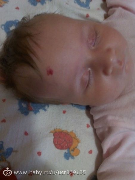 За первый месяц дома у нас на второй неделе отроду появилась гемангиома на лбу