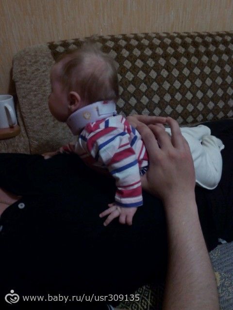 За второй месяц, у нас откуда не возьмись появился отит, который после излечения дал осложнения на шею и у нас стала установочная правосторонняя кривошея