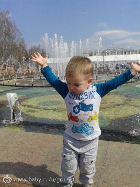 Чуть позже включились фантаны, а вода это наша страсть!!! Как закричит УРААА ВОДА МАМА ВОДА))) всё хотел потрогать воду, но в итоге просто побегали вогруг фантанов, покормили голубей.