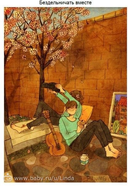 Художник «Puuung» рисует очень милые и теплые иллюстрации, в которых воплощает простые, но очень важные моменты любви в повседневной жизни. Любовь живет в мелочах.