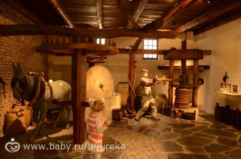 Некоторые стенды с включающимися кнопочками.Кнопочку нажимаешь и происходит действо.Например, осёл идёт по кругу и крутит каменный жернов, чтоб выдавить из оливок масло.