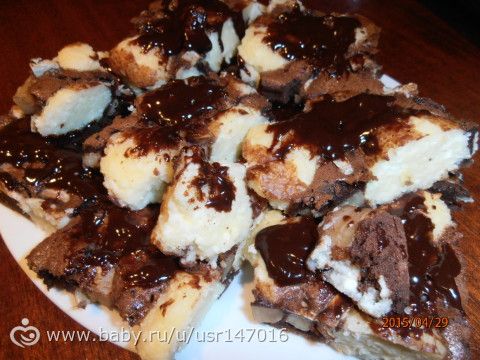 Ввиду отсутствия норм духовки и форм для запекания, получилось не очень.Но он вкуснющий!!! Глазурь я не делала, просто полила растопленным шоколадом. Времени досконально делать у меня не хватило. Я еще бананы между шариками прокладывала, резала мелкими кубиками.