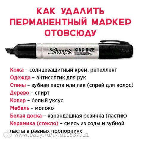 Наверное, у каждого случалась ситуация, когда ты или кто-то из близких пачкался несмываемым маркером. В доме, где есть маленькие дети, эта проблема очень актуальна: стоит только взрослым на секунду отвернуться, как маркер тут же оказывается в руках у крохи. Стереть маркер с кожи – это полбеды, но оттереть его с мебели, одежды и других поверхностей — это настоящая проблема. Но даже, казалось бы, в такой безвыходной ситуации можно найти решение. Если ты вдруг вымазал маркером любимую вещь, не расстраивайся, это можно легко устранить. Запоминай информацию и пользуйся ею!