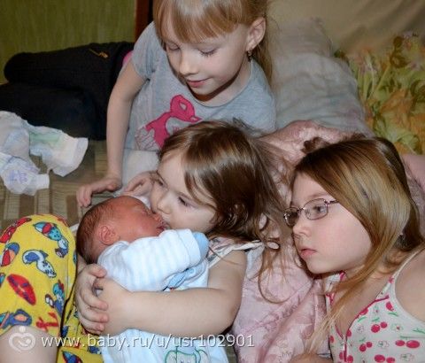 на выписке встречали папа с Ладой и моя сестра с младшими своими детишками, остальные ждали дома.