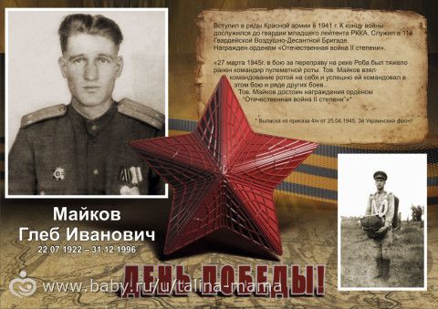 Дочкин прадедушка... 8 мая 2015 00:42 Отец моей любимой свекрови… Подготовили табличку к 9 мая Комментарии Пожалуйста, будьте вежливы и доброжелательны к другим мамам и соблюдайте правила сообщества ПожаловатьсяСкопировать ссылку БлохавСарафане Фиалка14 летКрокус9 лет Красноперекопск класс ПожаловатьсяСкопировать ссылку Лани Сын23 годаДоча14 лет Екатеринбург класс получилось! ПожаловатьсяСкопировать ссылку Каролина Вележко Марк16 летМарлен14 летМия5 лет Екатеринбург светлая память!ПожаловатьсяСкопировать ссылку Талина ИбблаГхыр Анюткин17 летТюшенька12 лет Ростов-на-Дону ПожаловатьсяСкопировать ссылку ЯскраваЗiрочка Виталик21 годАнтоша13 летАлиса12 летМаксим9 лет Энергодар Впечатляет!ПожаловатьсяСкопировать ссылку Талина ИбблаГхыр Анюткин17 летТюшенька12 лет Ростов-на-Дону Игорь дедушку своего сам обрабатывал для таблички… ПожаловатьсяСкопировать ссылку ღЮлькаღМамулькаღ Ксюшенька13 летТимурка11 летДарья7 лет ПожаловатьсяСкопировать ссылку Риночка Кошечка-крошечка13 лет ПожаловатьсяСкопировать ссылку Евгения Ульяна9 летМарк13 лет Миасс молодцы)))Дед герой! ПожаловатьсяСкопировать ссылку Юля Кирилл20 летНикита12 лет Астрахань Ни что не забыто, ни кто не забыт ПожаловатьсяСкопировать ссылку ПЛЮШКА Кира14 лет Обнинск Очень красивый плакат ) видно что с огромной любовью делали. Героям вечная память! ПожаловатьсяСкопировать ссылку ღ♥ஐМАКОВКАஐ♥ღ Москва Вечная память! Красиво сделали! ПожаловатьсяСкопировать ссылку SтеклоVata Доча10 лет Москва 31декабря(((((ПожаловатьсяСкопировать ссылку Талина ИбблаГхыр Анюткин17 летТюшенька12 лет Ростов-на-Дону Ага((( ПожаловатьсяСкопировать ссылку Лурека Инесса Орели14 летЖозефин11 лет Ницца хорошо ПожаловатьсяСкопировать ссылку Дашулька Артемий13 летЕлизавета10 летМатвей3 года Ростов-на-Дону Какие вы молодцы!!! Вечная память героям!!! Спасибо им за наши жизни!!! ПожаловатьсяСкопировать ссылку Елена Пчелка Владислав23 годаМихаил12 лет Ростов-на-Дону А где делали?Мы тоже собираемся идти в Бессмертом полку!Вечная память героям!!!ПожаловатьсяСкопировать ссылку Талина ИбблаГхыр Анюткин17 летТюшенька12 лет Ростов-на-Дону У себя — у мужа ип полиграфический дизайн ПожаловатьсяСкопировать ссылку Елена Пчелка Владислав23 годаМихаил12 лет Ростов-на-Дону Класс! ПожаловатьсяСкопировать ссылку Наталия Никита13 летМаксим19 летАндрей20 лет Донецк Показать ещё12 Предыдущая статья9 мая близко...Следующая статьяНу что, кто найдёт?
