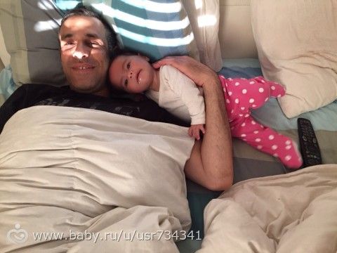 А вот это- Эмма сегодня ползала по папе, а потом так легла ему на плечо и они балдели :)