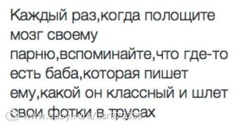 Я когда на своего злюсь — пытаюсь поставить себя на его место, ведь ему тоже тяжело выполнять свои обязанности, и постоянно нести ответственность за семью. Ещё думаю, как же я без него. А недавно вот попалась мне такая картинка, тоже мотивирует