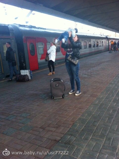 Перенес он поезд отлично. Скормлено было всего 2 бутылочки смеси и переодето 3 памперса. И о боги он ни разу не покакал, как я этого боялась.