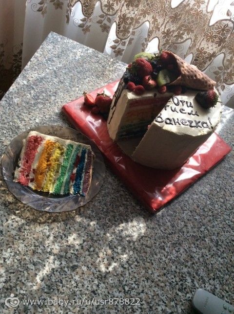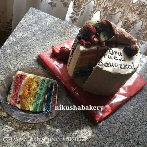 пекла вчера целый день радужный тортик.