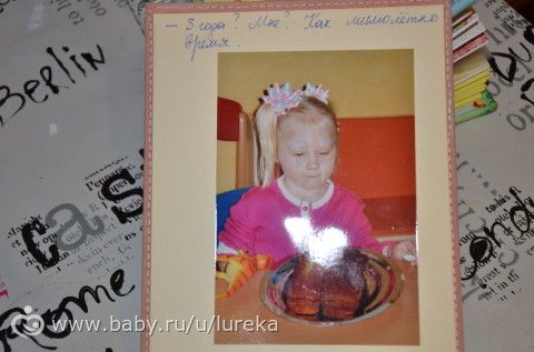 И вот последняя страница альбома-3 года.Это не значит, что альбомов больше не будет.Следующая моя идея-забацать сестринский альбом, где на фотографиях будут сестрички вместе.Думаю, тоже будет в дальнейшем интересно смотреть на их изменения.не только внешние, но и на манеру позирования, ведь с возрастом всё будет меняться.