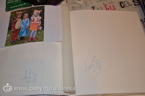 Ну и ещё на протяжении всех заполнений альбомов я рисую детские ручки иногда и подписываю даты.Раньше только Орели, теперь уже и Жозефин.