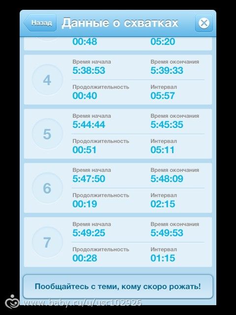 Мне здесь писал счетчик тренировочные ))) ни фига не тренировочные были, самые настоящие схватки были, родила через 5 часов ))) хорошо что 2 роды и сразу почувствовала что во. Оно