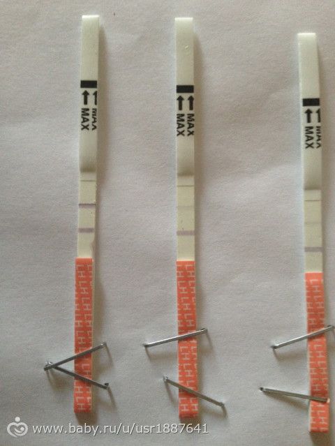 Нижний тест — вечерний, верхний — утром! Итак, делая с 9 ДЦ каждый день, поймала на 15 ДЦ полосочку! :) УРА! Значит, О считать 16-17ДЦ! При моем цикле 27-28 дней! Вот! :)