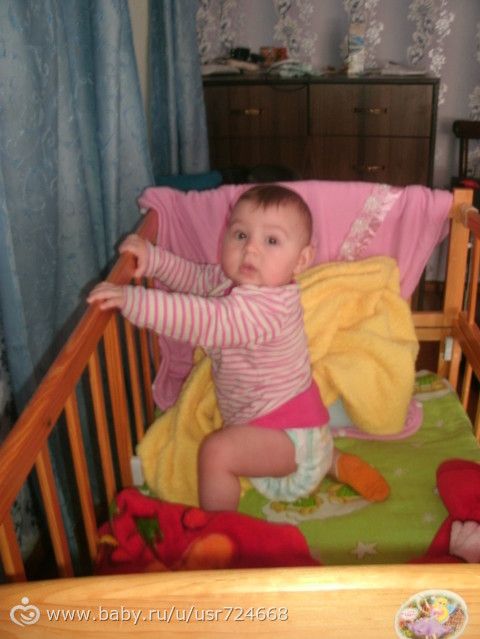 Всем приветик!!! Очень давно не заходила на сайт и у нас многое изменилось буквально за 1,5 месяца доченька научилась сидеть, и ползает по всему залу и пытается уже выползти в коридор,24 апреля у нас показался первый зубик потом через недельку и второй! Конечно без капризов прорезывание зубок не обходится за это время я немного устала, но всё же радует что уже есть аж два зубика!!! И вот на днях наша дочура удивила нас вообще хочет вставать на ножки, когда первый раз увидила плохо стала мне)))))Когда начинает капризнячать плачет и выдает звуки «маааа» приятно так!!! Ну и конечно я уже начала вводить прикорм просыпаемся мы в 6:30 и даю смесь, где то в 10 желток и кашу, обед -супчик, в 4 смесь и перекус фрукты или печенье бонди с молочком, ну а кормление перед сном мы ещё не заменили взрослой едой! Вот такие вот у нас достижения!!! Всем крепкого здоровья, растите здоровенькими !!!!!