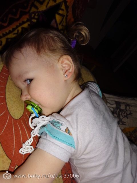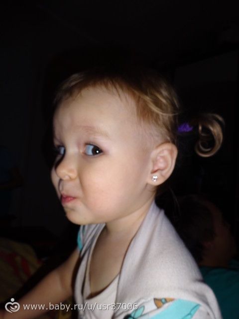 какая лапуська!!! Серьги супер. а мы долго не ходили с гвоздиками, вообще не понимаю как с ними дети ходят, пыталась потом сама их носить, так у меня мокнуть уши начали!!! Там они какие-то с зазубринками были, может конечно это только наши такие, но мы быстро на золотые обычны е перешили