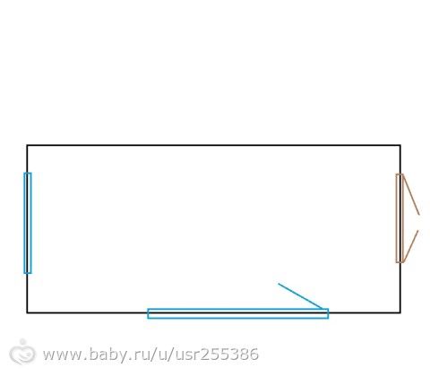 И вот такой зал узкий, с 2мя окнами, с выходом на балкон, балкон выходит на южную сторону.