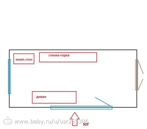 я бы комп.стол спрятала около двери, чтобы не бросался в глаза