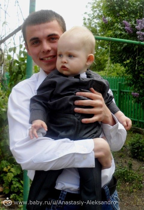Отпраздновали мы годик нашему сыночку. Славушка вел себя хорошо, гости были приглашенные на 14.00, так что он как раз уже проснулся после дневного сна, улыбался и смеялся, шел ко всем на ручки (что бывает крайне редко), вообщем наш зайчик радовался и веселился. Подарочков нам тоже надарили много разных, мы дарили музыкальный толокар и достаточно большой р/у квадроцикл. Пока мы не ходим, но быстро ползаем и открываем и выворачиваем все до чего достаем. =) Кушаем хорошо, уже все начал признавать, любит и мяско, и рыбку, весим 9,800, рост 80 см. Говорим неразборчиво, с понятного только мама, папа, да. Вообщем год пролетел быстро и незаметно, иногда даже не вериться. Ну и конечно фотки:
