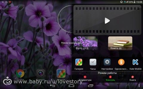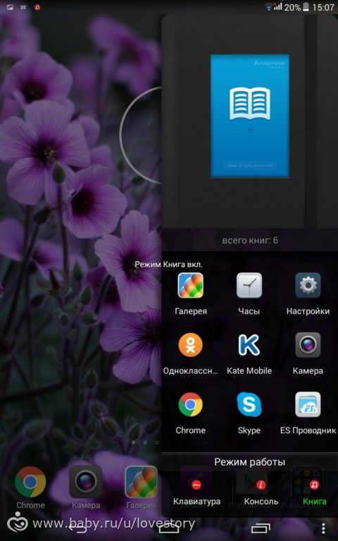 Это что касается оболочки Lenovo. Здесь же хотелось бы рассказать о следующей особенности Lenovo Yoga. когда вы меняете положение планшета, автоматически меняется режим просмотра. их всего 3: книга, клавиатура и консоль. При каждом режиме изменяется цветовая палитра и подсветка, она автоматически устанавливается более оптимальная для того или иного режима