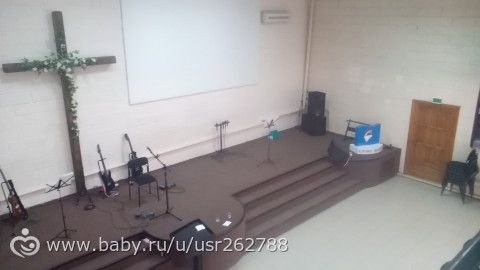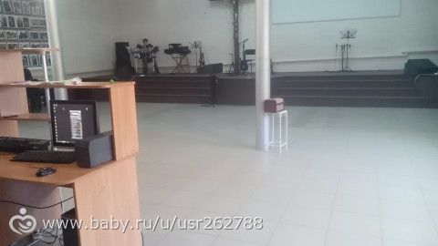 Здесь всегда сидят кормящие мамочки во время служения — никто их не видит и детки могут спокойно поиграть, поползать. А в будни — мои малыши тут играют.