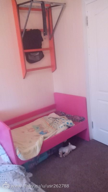 кровать у нас есть, но мы ее убрали — оставили только матрас — нам так удобнее. и детская настина кроватка у нас в комнате.