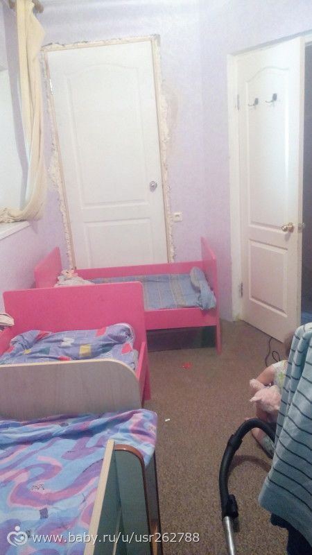 в той комнате где щас влад с малышами — будет большая кухня, она обьеденится с нашей сегодняшней, а спальня для нас и для малышей будет там где сейчас окно слева из детской — это будет дверь. К концу летом планируем доделать.