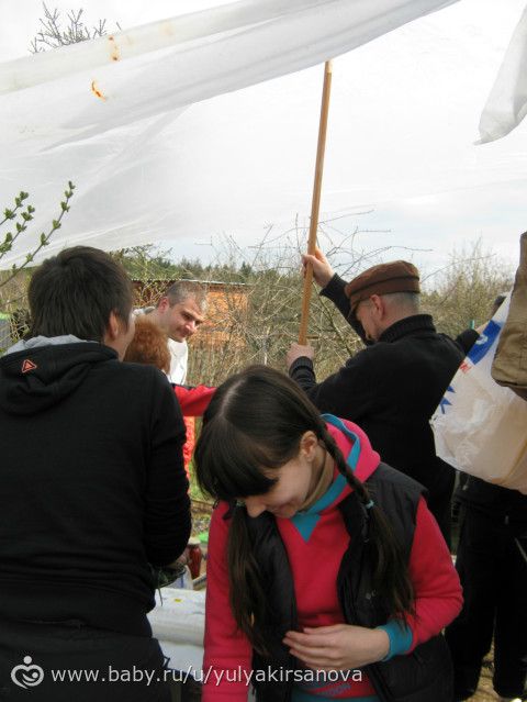 Хоть и почти весь день шёл дождь, было круто, нам это не помешало. Мы сделали навес, а на деток дождевики одевали.