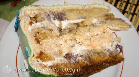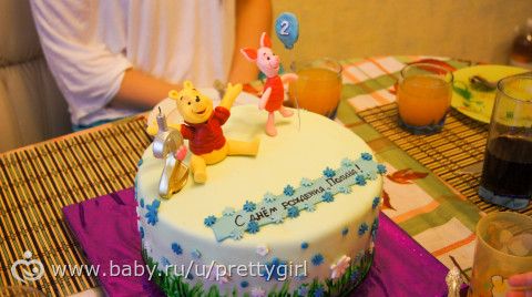 Отмечали мы семьёй, из гостей только моя сестра, она же крестная, была. Тортик заказывала у нашей — тортик просто восхитительный, правда! (На год мы тоже у нее брали — объедение)