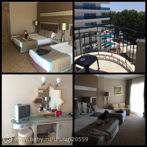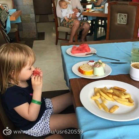 Всем привет! Мы вчера вернулись. И пока я помню пишу. Ребенку 2.11 — будет 3 в июне. Полетели библио глобусом на 6 дней. Отель Мукарнас в Аланье. Путевка обошлась 52000 + доплатили за выбор рейса по времени Трансаэро по 30 долларов за человека. С собой взяли 250 долларов — ЭТО ПЕРВАЯ ОШИБКА — деньги лучше брать в ЕВРО! — там это больше приветствуют. С собой был только маленький чемодан на 30 литров, коляска бебизен ее, сумка для вари с собой в самолет (пляжная из доминиканы и рюкзак для документов. Туда у нас рейс был в 6-25 утра. Ночью приехали в аэропорт. Не понравилось что и детки должны проходить через рамку… на паспортном контроле. В самолете Варя спала. Вылетели и прилетели вовремя. Самое страшное для меня было — это получать багаж. Рядом с летной была детская площадка… варя сразу сорвалась с коляски… еле уговорила ее попить компот из бутылки пока я получаю чемодан. Его я увидела у бабули которая ловко уже сваливала кудато… еле доказала ей что это мой!!! Библик нас на стойке ПОСЛАЛ… к другому типа принимателю… Я сначала расстроилась — но потом — нас подхватили три турка, один катил коляску, другой чемодан, третий тащил варю… Нас посадили в микрик с комфортом, кондеем и интернетом )))) Нас было только двое я и варя — и гид с водилой ))) Моментально нас домчали до отеля. В отеле в 12 нас уже заселили в СУПЕР номер с двумя кроватями )))) Мы пользовались только одной большой… — на второй мы вещи раскладывали )). Второй мой страх — как я с варей буду набирать еду на шведском столе. Тут Варя оказалась ваще ангелом. Она сидела за столом!!! Да-да! Ингда с планшетом иногда без. Но сидела и терпеливо ждала меня пока я набирала ей и себе еду! Это было супер!!! Пару раз она сбегала — но рядом все время. А по территории отеля вообще только за ручку. — и попробуй ей ручку не дай… такой ор поднимет. Отель супер!!! Он даже не семейны — он детский! Там без детей делать точно нечего — потаму что визгов там много!!! детей куча!!! большая часть немцы и поляки, русские и украинцы. В мини клубе девушка с грузии идеально знающая русский!- но мини клуб с 4 — я ее не оставляла. Есть детский буфет — работет с 12 до 13 там детская еда ))) — макароны, сосиски, всякие пирожные и тд. Детские столики и приборы все пластиковое. Спец бассейн мелкий и горки, карусе, куча батутов, дискотека и тд. Главный минус отеля это пляж!!! Там жуткая галька и ппц какие волны — толи время такое толи просто место реально не очень. У бывалых шутка есть даже — смотри ктото купается! — а они толко приехали — им надо. Короче купались мы мало — мочили ножки но варя боялась волн — а они были всегда. В бассейне мы плавали в круге обычном за 5 долларов там купленом. Ноги были все сбиты и поцарапаны, а один раз мы грохнулись сильно об кафель. В отеле есть детские автоматы — она стоят 1 евро или жетоны покупать по 1,5 доллара — вот тут я поняла почему евро лучше. Еще один минус но уже турции — это комары по вечерам… в мае вечером довольно прохладно — я не привыкла к такому (отдыхала в Египте, тайланде и доминикане) Вещей потеплее я не взяла поэтому мы ходили в одних и тех же легинсах с варей… У меня алергия на укусы комаров — вечер был адом ))) Но я пережила — после мини диско мы часто шли спать. Под конец варя освоилась и начала шалить и убегать! Так что нееля это прям идеально! Обратно нас вез тот же «персональный трансфер» Все было во врем