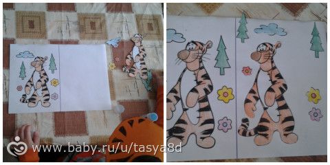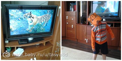 — Сделала маску — Мишке очень понравилась)) Пока бегал в ней, по телику начали показывать настоящего тигра — случайно совпало