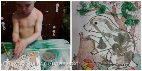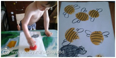 — Рисовали пчелок, т.к. барсуки любят мед. Рисовали шариком, наполненным водой