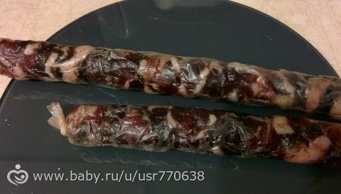 Проверила колбаску на балконе. Хорошо подсохла за сутки, пахнет шикарно