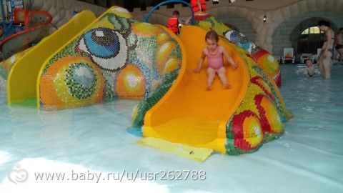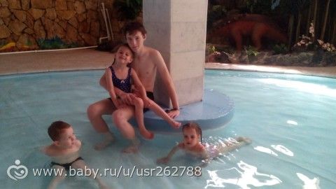 Всем привет!!! Опять я пропала… У детей начались каникулы и они выпросили на их день рождения аквапарк — ну и мы поехали… Всей семьей в составе девяти человек выехали в ночь, утром были в Казани, затарились в Ашане продуктами покушать в аквапарке и поехали туда… оох как я устала там… воспитательные процесс даже там у нас не приостановился… я думала там девченки будут ооочень увлечены — так в принципе и было, но даже там они нашли что натворить — чего нельзя. Началось с Насти — потащила надувную игрушку на горку — нам в свисток сделали замечание, я Насте все обьяснила… видимо не очень понятно — была вторая попытка но уже на горку повыше, после чего она сидела на шезлонге и горько лила слезы пока все купались — как хорошо что там музыка громко орет… Потом я ее пустила купаться — и тут Катя решила что ей-то уж точно разрешат… ну и то же сидела потом на шезлонге. Когда дети замерзли — повела их в сауну — ну там Настасья наша вообще скандал закатила мне — не хочууууу, пришлось ей греться на верхней полочке, все кто не плачут — внизу, а кто плачет — наверху. В сауне не сильно жарко, просто погреться. Так мы и вышли, все мои обьяснения были впустую… положила ее на шезлонг и там она поспала часик. После сна она встала еще недовольнее, пошла хмурая как туча — пыталась купаться. Мак Алиса и Катя наплюхались, мы там целый день были. Старшие там сами по себе бегали, я с ними покаталась с больших горок, поочереди.