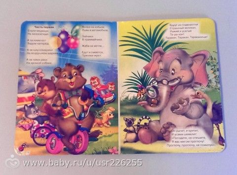 3. Тараканище. Просто папа читает его разными голосами и с большим выражением. Когда сын хочет именно послушать, а не поиграться, несет ее. А еще в ней много зверей нарисовано и можно просто смотреть картинки.