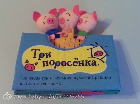 4. Три поросенка. Мягкая книжка — театр. Надеваешь книжку на руку и давай сказку рассказывать.