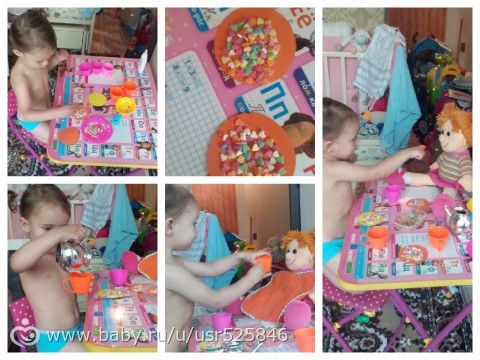 сначала сделали пироженки, потом пригласили в гости куклу)) и бедной кукле пришлось отдуваться за всех)))