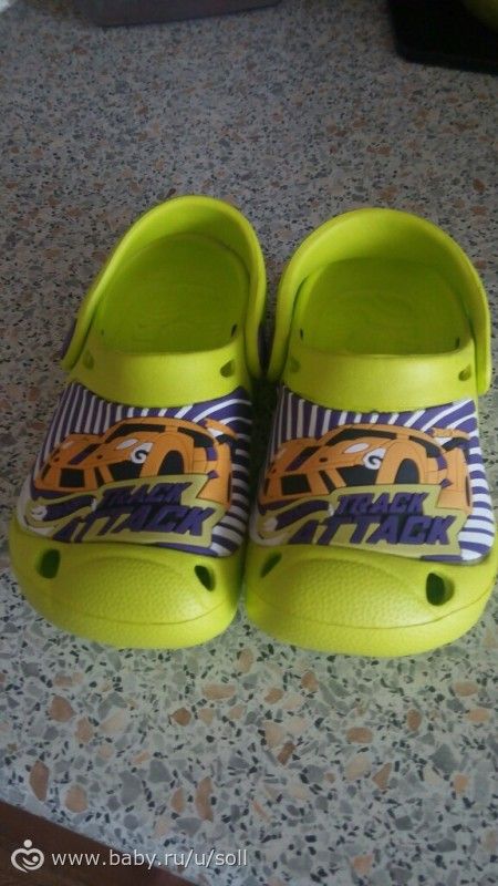 Пляжная обувь, в бассейн, да и просто для прогулки. Такие у нас уже были, но стали малы. Цена их нереально низкая, боялась, что будут жесткие. На практики мягкие. Матюнич их оценил сразу. Тем более еще и с машинкой))) (Специально такие взяла)