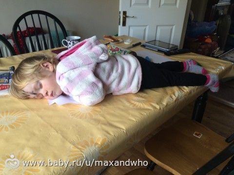 Мой один раз заснул за столом с булкой в руке:*))))))