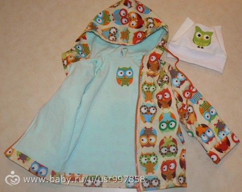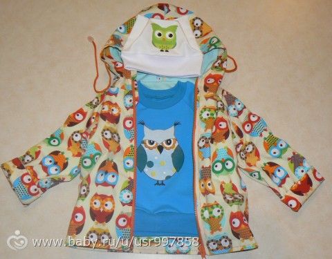 Ну и наконец для маленькой (86р-р) любительницы сов из Барнаула, сшилась ветровочка, свитшот и шапочка.