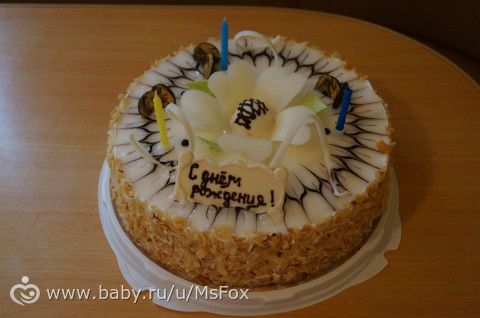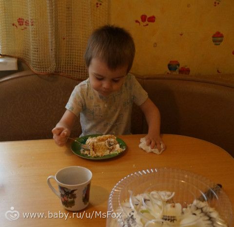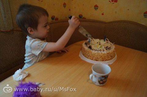 Утро началось у нас с вкусного тортика (моя мама сделала его на работе, за что ей огромное спасибо!). Вадим сам задул свечи и начал резать его )))
