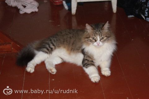 мамин кот живет в деревне, он мега пушистый! но дом чистый! потому что он целыми днями на улице и ест рыбу! молоко! и сметанку!