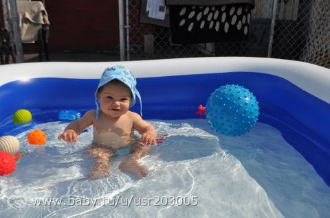 — Бассейн… Оооо, как мы любим бассейн во дворе!!! Особенно пока мама не смотрит, аккуратно языком полакать из него воду… Мммм, вкусно видимо очень!)