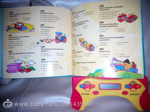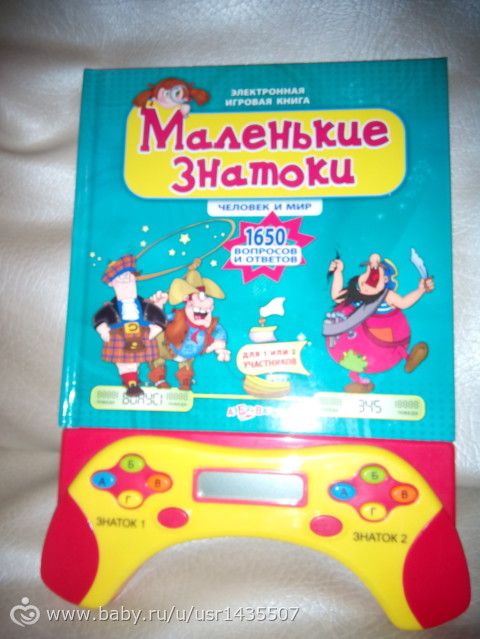 И для мальчишек решила попробовать взять книгу-игрушку «Маленькие знатоки». Их двое и книга рассчитана на одного-двух игроков с джойстиками. Почти тысяча вопросов с вариантами (3-4 варианта) ответов на каждый. Нужно выбрать правильный и заработать очки. Есть вопросы попроще, а есть такииие, что я вчера сама задумалась...