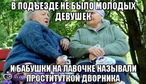 Возвращалась с малыми домой сегодня, идет по тротуару бабулька лет 70 — короткие шорты(при чем такой длины, я стесняюсь такие носить), футболка и обувь на танкетки достаточной хорошей высоты+темные очки — вообщем бабулька в тренде, а чуть позади нее идут 2 бабульки тоже примерно такого возраста, но одеты, как обычные бабушки — шлепки+платье-халат и косынка. И слышу их разговор, при этом они смотрят осуждающее на прошедшую бабульку-модницу: Петровна, видишь, вырядилась вон как ...«пауза»… как проститутка… тьфу на нее...