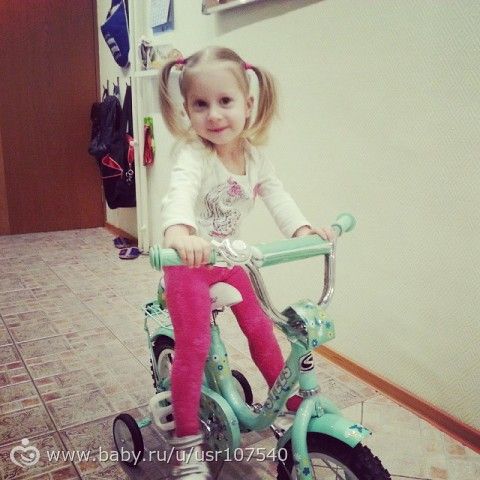 Ну и первый велик, пока еще до конца ножками не достает, но летом, надеюсь, научится вовсю кататься.