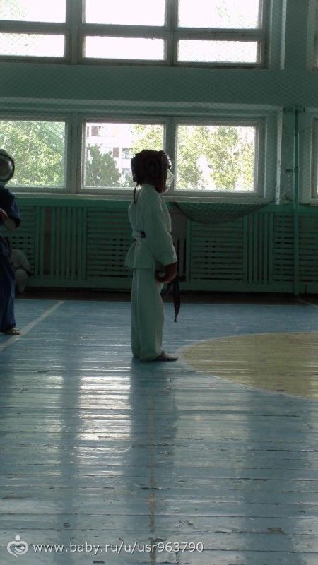 Сдали мы на пояс фиолетовый с черными полосами, осенью дадут сертификат. В этот раз одни мальчишки и она