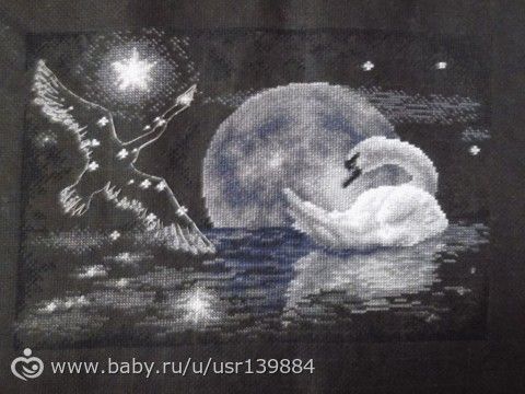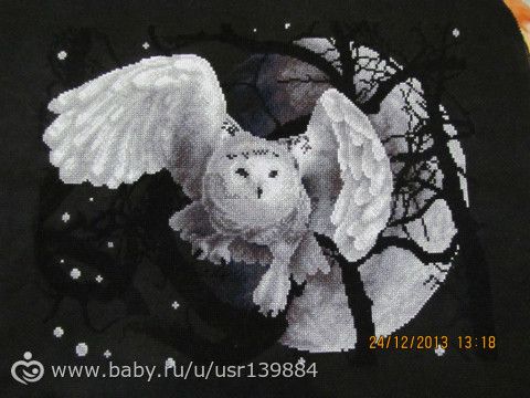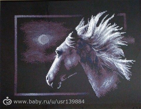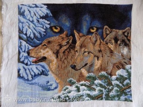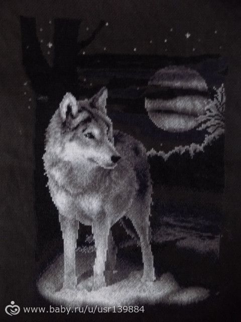 на черной вообще обожаю вышивать, но самая долговременная работа это волки, я ее 5 месяцев вышивала, на белой канве правда, у нее размер 38,5см на 44см