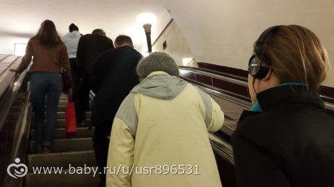 На эскалаторе замотанные в теплую одежду люди-вот оно, питерское ЛЕТО:((